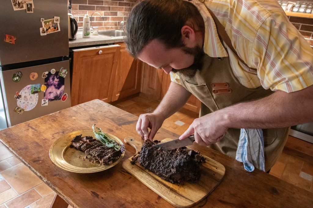 Workshop byl první vlaštovkou v rámci nově spuštěného projektu Gastronomie českého středověku a mohl proběhnout díky tomu, že jsem jako autorka měla po několika letech bádání a experimentování konečně chvilku volna, jelikož byla stejnojmenná kniha právě připravována k expedici z tiskárny. Měla jsem tak možnost ověřené poznatky začít prezentovat i veřejnosti. Odehrával se v sobotu 1. 6. 2024 v Českém Brodě a byl zaměřený na zkušené kuchaře a kuchařky, co v rámci oživené historie připravují pohoštění pro své družiny a přátele na akcích datačně stylizovaných do období středověku. Sešla se úžasná parta lidí a myslím, že jsme si to všichni velice užili. Rozvinula se velice podnětná debata nad různými aspekty spojenými především s uchováním potravin přímo v průběhu historicky zaměřených akcí a celkově to za mě byl velice příjemně strávený den. Výsledky celodenního vaření stály opravdu za to, jak po stránce chuťové, tak i estetické. To můžete sami posoudit díky úžasným fotografiím, které v rámci reportáže zhotovila Kateřina Triss Postránecká. Její další tvorbu naleznete na webu pod názvem Trissfoto. Touto cestou bych ji opět ráda poděkovala za báječnou spolupráci.